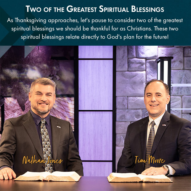 As Thanksgiving approaches, let's pause to consider two of the greatest spiritual blessings we should be thankful for as Christians.